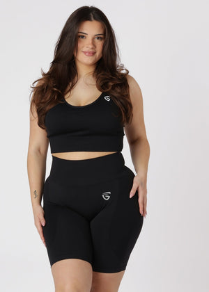 Sports bh'en er almindelig i størrelsen, og vi anbefaler den størrelse du normalt bruger. Modellerne på billedet bruger str. Small og Large.
